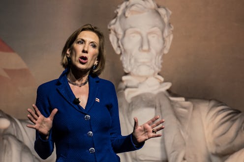 Not only will Fiorina participate in the primetime debate, but she's got a pretty prime podium location, too. Fiorina will be next to Carson, complementing Rubio on Trump's side. Fiorina's surge in polling popularity after the second Republican debate, when she stood her ground against Donald Trump, shows that the 2016 presidential race is anyone's game at this point. Who knows — maybe one of the four politicians from the 6 p.m. debate next week will see their popularity increase after the event, too.