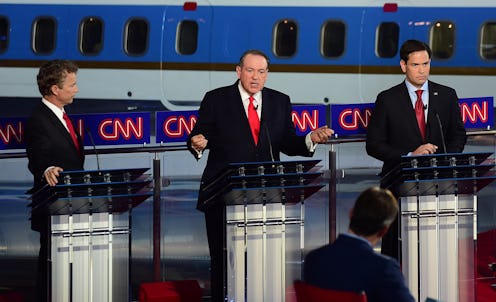 Think of the first two debates as Presidential Practice 101. The content is varied and the topics are broad, so everyone thinks they have a shot at graduating with a degree in White Houseology. Fast forward three semesters to Advanced Political Non-Methodology, and the students are dropping like flies, desperately clinging to whatever bits of knowledge they've accumulated over the fast-paced climb and praying to God that they don't accidentally oversleep on the morning of the big primary (for now, let's call it the "midterm"). If the Republican race were a university classroom, Jeb Bush would be the dynasty student dying to study art history at Brown instead, Donald Trump would be the smart-aleck who got in because his dad is "really rich," and Ben Carson would be the 18-year-old who mysteriously got into the school on a floral arranging scholarship.