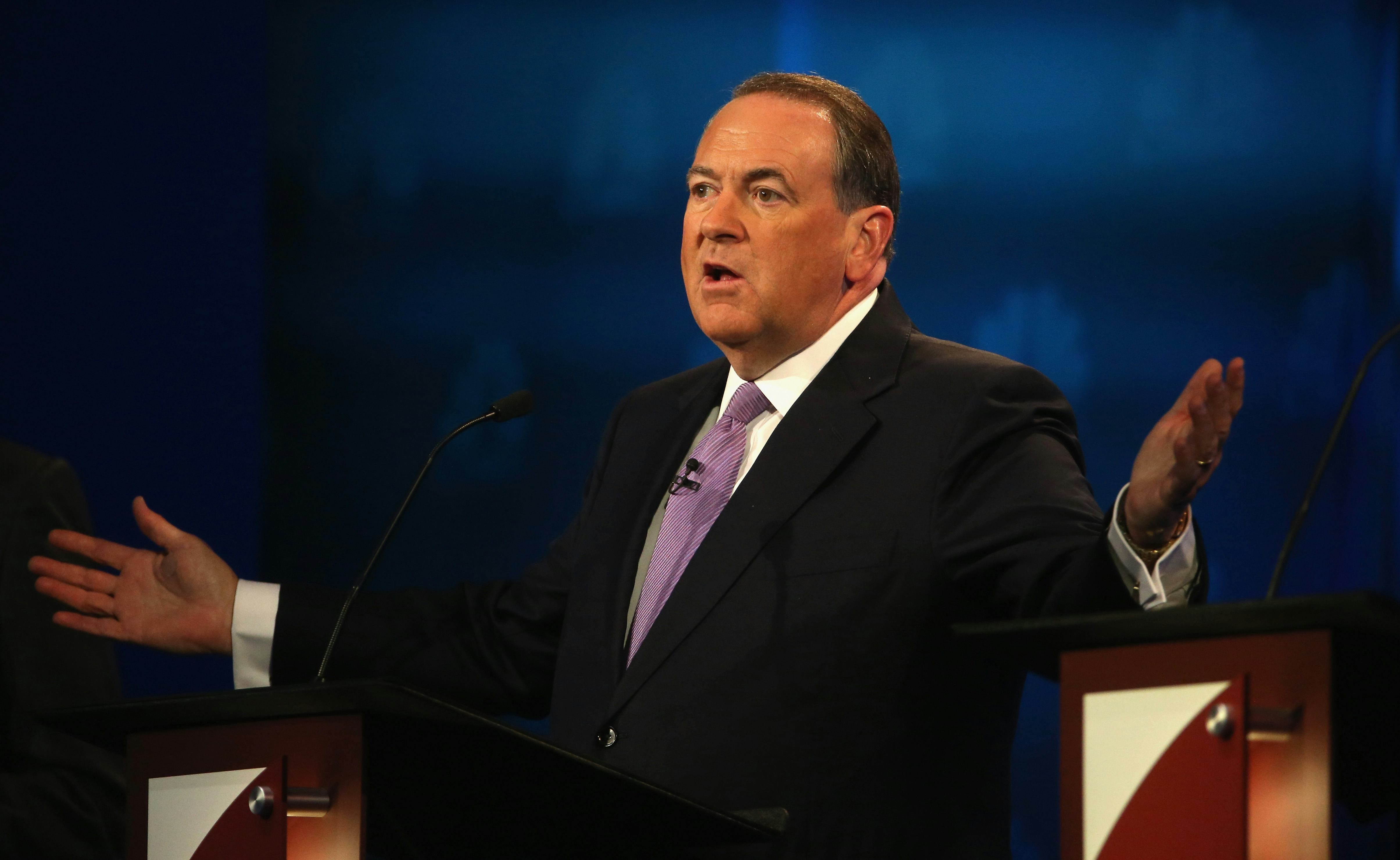 "Governor Huckabee, you've written about the huge divide in values between middle America and the big coastal cities like New York and Los Angeles," Harwood said midway through Wednesday's debate. "The leading Republican candidate, when you look at the average of national polls right now, is Donald Trump — when you look at him, do you see someone with the moral authority to unite the country?"