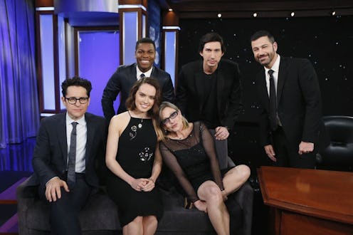 The Star Wars Episode VII: The Force Awakens promotional tour is in fully swing, and it's latest stop was on Jimmy Kimmel Live! for an episode dedicated entirely to Star Wars. Director J.J. Abrams appeared for an interview, along with cast members John Boyega, Daisy Ridley, Adam Driver, and Carrie Fisher. Abrams provided some insight into making the film, and the cast showed off the incredibly charm and chemistry that they have, which will hopefully translate to their characters in the film. During the interview, the cast — especially the sharp-tongued Fisher — dropped some great quotes about being a part of the epic film franchise.