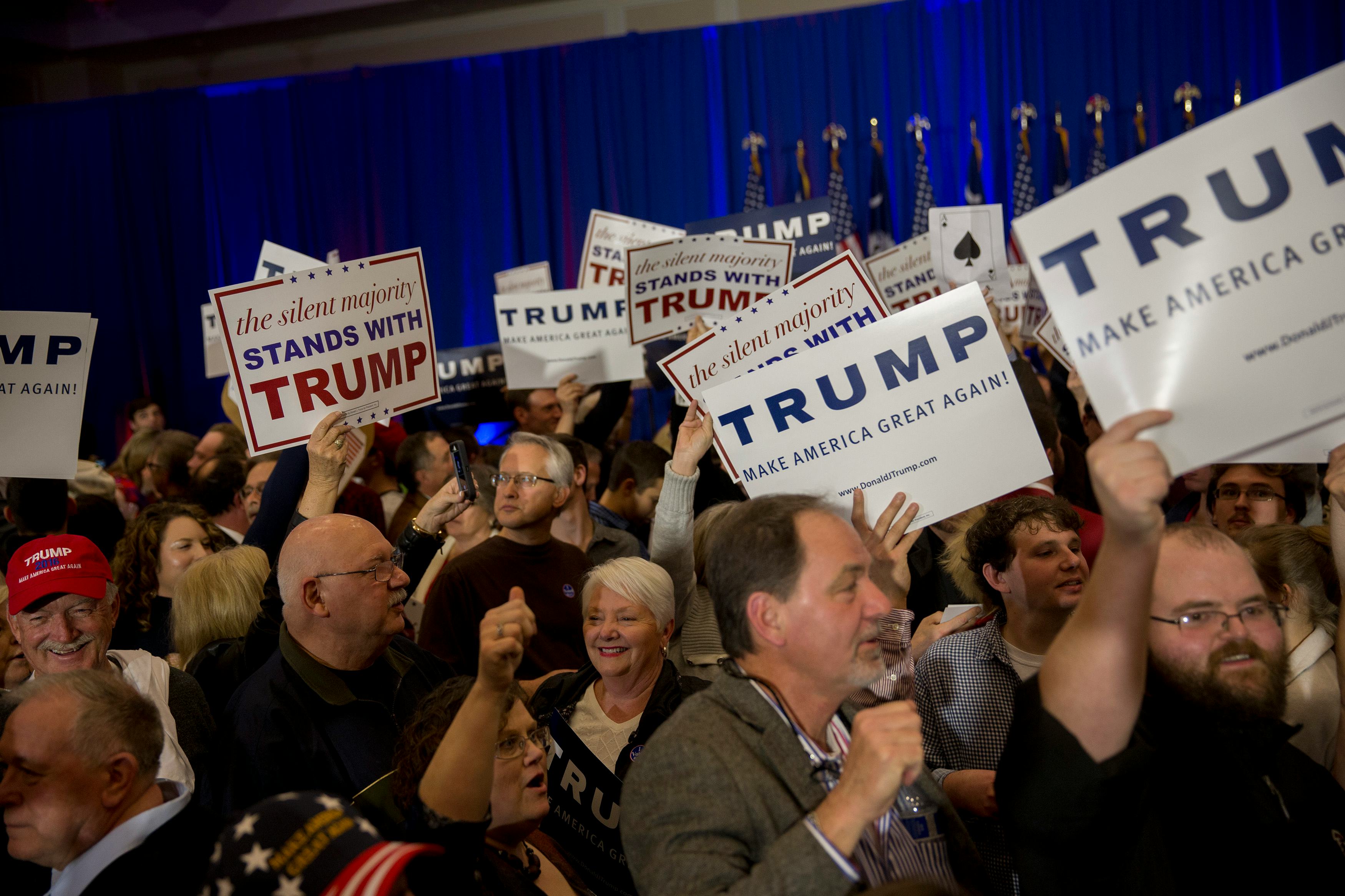 Well, it's official: after months and months of wondering whether the belligerent billionaire businessman could actually get it done, Donald Trump has won the South Carolina primary. And as the news washed over the crowd at his campaign headquarters, it provoked an predictably excited response: here's what Trump's HQ looks like right now, with the candidate's victory speech sure to be raucous.