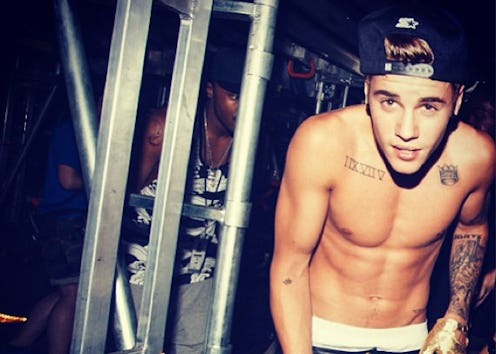 We're all painfully aware that Justin Bieber loves to go shirtless — he might actually love it more than hot boxing his private jet, making it rain at strip clubs, AND getting arrested. The "Confident" singer is shirtless 99 percent of the time these days and it looks like Bieber's taken his sans-shirt look to the club.