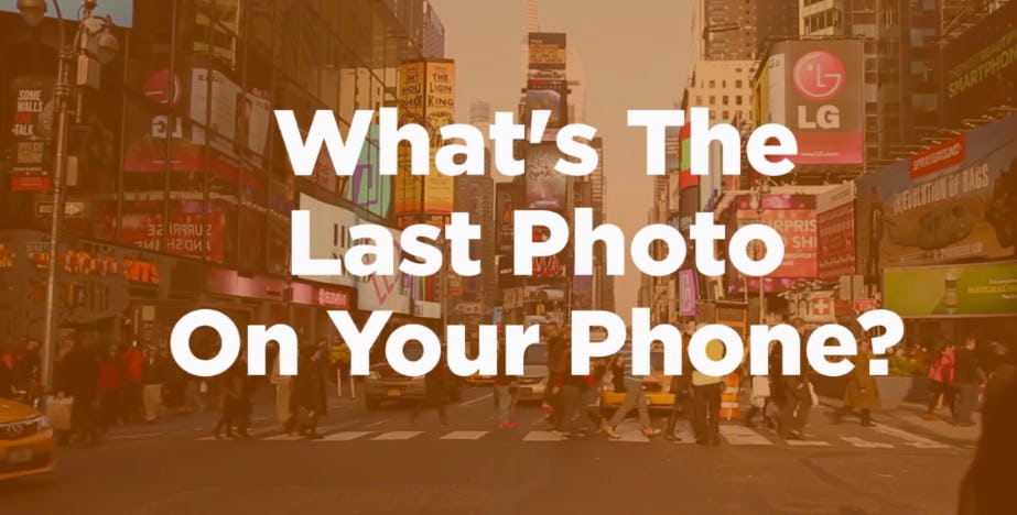 Has snapping photos on your phone become a mindless habit? For one artist, it's become an art project. In artist Ivan Cash's series "Last Photo," Cash traveled to New York City, Los Angeles, and San Francisco, interviewing random strangers and asking to see the last photo they have saved in their phone's camera roll.