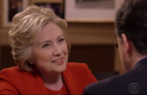 Clinton (much to her credit — I'm from Iowa) explained how meat on a stick is actually great at places like the Iowa State Fair. "Can I just tell you this?" Clinton said. "It is true, when you're walking around the fair, you don't want to stop, sit down, and eat. If you get it on a stick, you can actually continue to walk and ..." Colbert then interrupts her: "You can enjoy the fair without being deprived of your meat." Not covered was whether she takes hot sauce in her bag to the fair, too (evidently, Clinton's been doing that since even before "Formation").