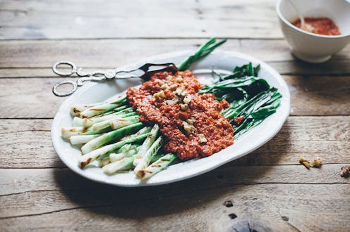 2. Grilled Green Onions with Walnut Romesco