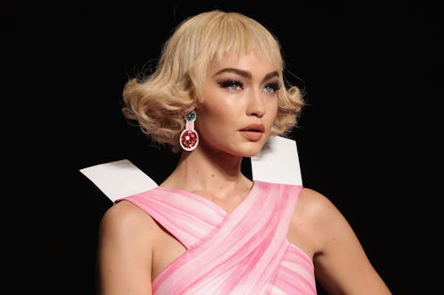 If we've learned anything from this season's fashion shows in New York and Milan, it's that Gigi Hadid can pull off literally any beauty look like a pro. Red eyeliner? Yup. Neon Eye makeup? Obvi. Gliiter lips? Of course. On Thursday afternoon in Milan, she showed off her most daring beauty look yet when she walked down the runway at Moschino with a curly, cropped bob and bangs. But did Gigi Hadid cut her hair to achieve this new style?