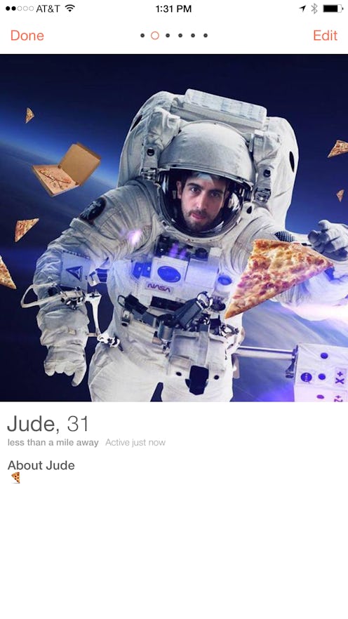 Jude from Boston has a problem. You see, Jude is single, so — as you do in 2015 — he went on Tinder in hopes of finding that special lady to spend the rest of his life with. Just kidding! This is Tinder; he ostensibly wanted to get laid. (No judgement, Jude. We've all been there.) Knowing competition can get pretty stiff in a major metropolitan area, he knew he needed to create a profile that stood above the rest. Using his wit and Photoshop, Jude put together, I must say, a pretty killer collection of portraits: Jude riding a bear; Jude as one of Daenerys Targaryen's dragons; Jude surrounded by puppies. Any one of these photos, one would think, would have all the lovely ladies swiping right for days. (The fact that he's a Game of Thrones fan alone is pretty good incentive, in my humble opinion.)