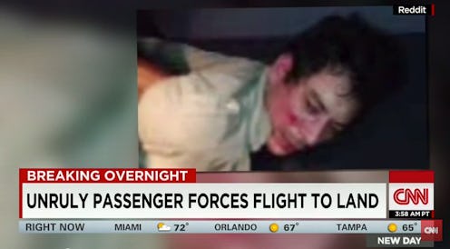One [passenger] held his feet and the other one kind of laid on top of him and then the flight attendants went and got some plastic restraints for his arms.