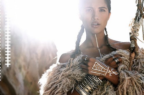 The corresponding photo shoots to advertise the tattoos further play into stereotypes of exoticism. The styling heavily features boho, "gypsy-inspired" clothing, like Lulu DK's advertisements in the Bloomingdale's catalog featuring a blonde model in a tie-dye dress with tons of bracelets paired with the tats. Child of Wild's shoot with Flash Tattoos features an ethnically ambiguous, desert nomadic woman, replete with a silver ankh behind her ear and a gold cobra wrapped around her wrist and a magic, shamanic staff of some kind. It's nonsensical, and the look is almost cartoonish in the way it plays around with stereotypes of "wild" or "native" women.