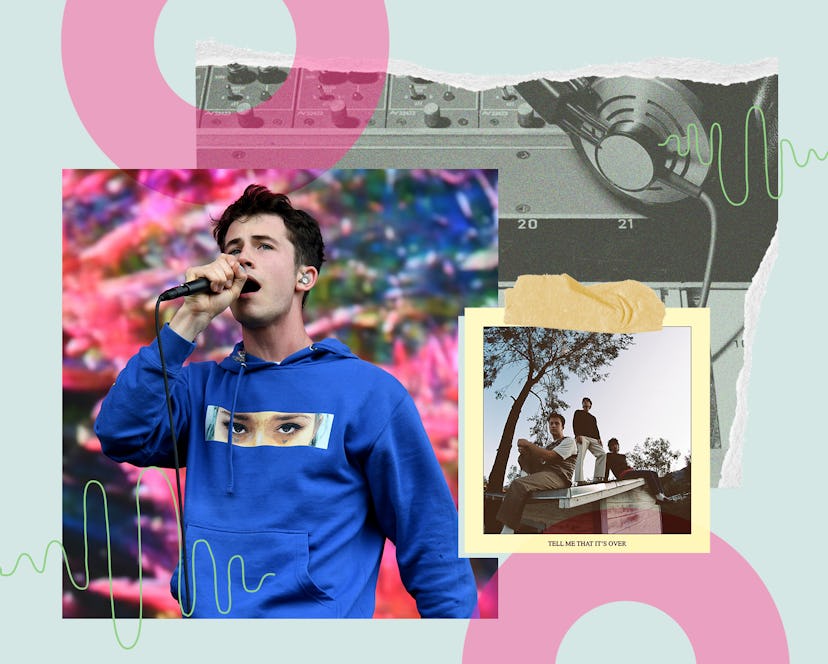 After a decade as bandmates, Dylan Minnette, Braeden Lemasters, and Cole Preston joke they have a surefire way of resolving their disagreements. “We normally fight it out, like physically, with some beatdowns,” Minnette tells Bustle before bursting out laughing. While the indie pop trio, now known as Wallows, is having their breakout moment this year — performing at Coachella, Bonnaroo, and Lollapalooza as well touring the world — the trio has been preparing for this career peak for as long as they can remember.