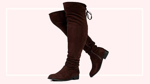 These cute, stretchy over-the-knee boots are made with 100% vegan faux suede — and they boast a solid 4.2-star overall customer rating on Amazon. They feature an anti-slip outsole for stability in all kinds of weather and a cute inner side zipper with a tie in the back. This pair also has wide-width sizes for a comfortable fit and five colors to choose from.