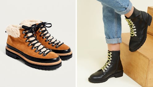 Plenty of high-end designers have come up with their own take on the mountaineering look but most are sadly way out of my budget. So I've scoured the high street for some affordable alternatives that promise to give you grip, comfort, and pure style. For those that love the colour black, you're in luck as this appears to be very much in favour. However, there are rustic brown options, a pop of pink here and there, and a leopard print pair that aren't to be sniffed at. You can opt for subtle laces or colourful ones, an ankle-length pair or boots that give a little more warmth, a faux fur lining or a faux shearling one. The possibilities are literally endless.