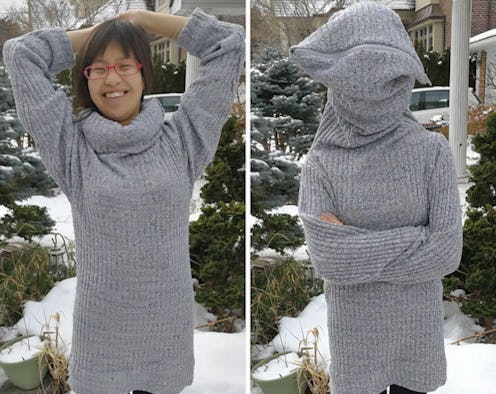 This is the genius "Leave Me Alone" sweater, invented by Pinterest Engineer Ruth Grace Wong. It's not available for sale, but it's on Betabrand and Instructables.