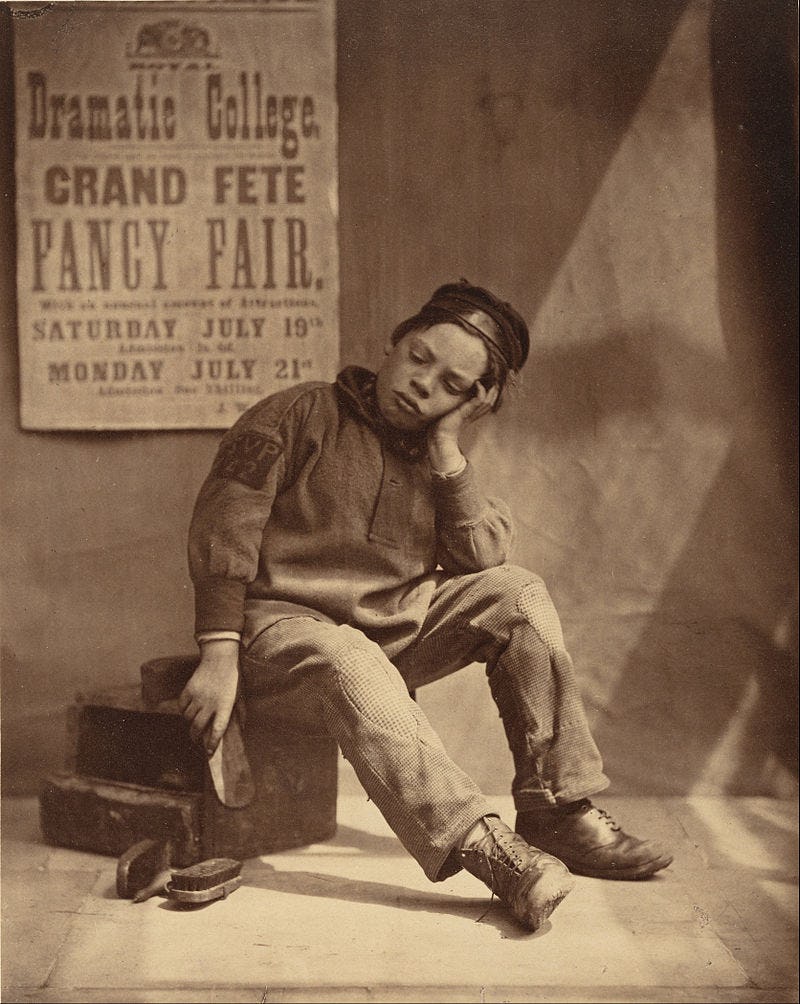 Records show that overwork was regarded by the Victorians as a supreme strain on the nerves, and could cause utter madness or complete exhaustion: young women who'd been diagnosed with it could be put to bed and forbidden to do anything, even sew, for weeks. (If they were lucky. Some women were sent to asylums for the same issue.) The root of it all, some doctors thought, was too much "brain work." Enterprising souls set out to find cures, from taking the waters at places like Bath to more obscure methods, like Hill's Genuine Magnetic Anti-Headache Cap. The headgear promised to relieve mental strain through the use of magnets, though how is not explained, probably because it's nonsense.