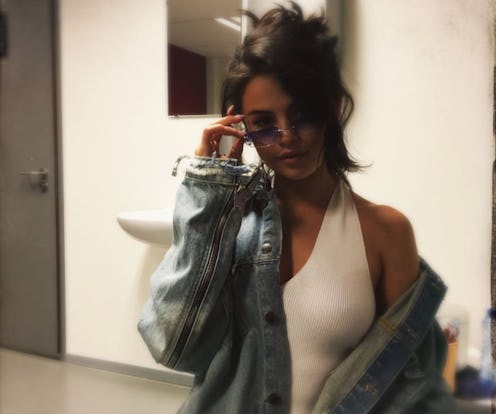 Perhaps one of the biggest proponents of the sunglasses trend is Selena Gomez, who has rocked several '90s-inspired sunnies for a variety of occasions. She's rocked an oval pair with red lenses, a slightly rectangular pair with ombre purple lenses, and a small black oval pair. Gomez is the queen of '90s sunnies.