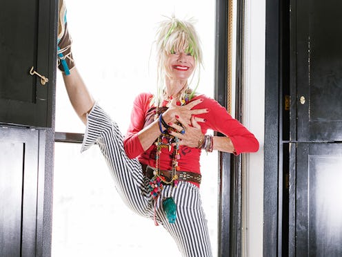 In a quiet hotel suite in New York City, Betsey Johnson sits cross-legged on a couch, recollecting the biggest secret she’s ever kept. The 75-year-old fashion designer picks up a tiny green grape from the fruit platter in front of her and rolls it between her fingers. She then selects a slice of apple from the plate, placing it on the table. She gently put the grape on top of the semicircle slice.