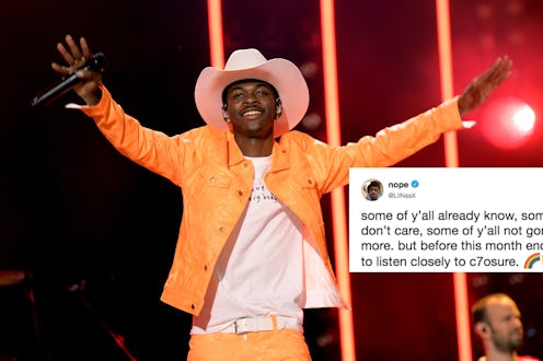 Pride Month 2019 may have officially come to a close with World Pride Day on Sunday, June 30, but for Lil Nas X, it's only the beginning. That same day, Lil Nas X came out on Twitter by urging fans to look closely at the lyrics to "C7osure," the last song on his new EP, 7.
