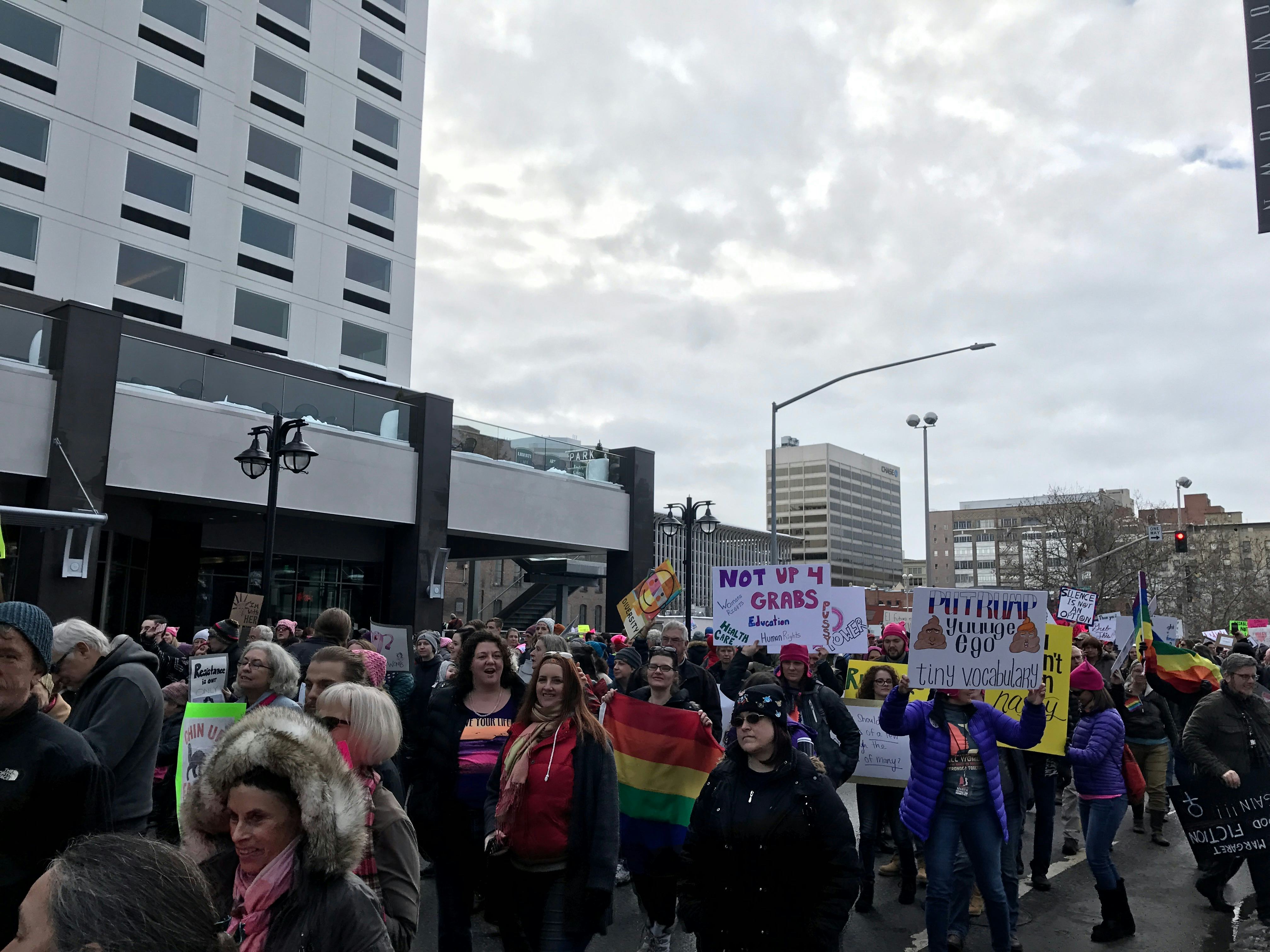 Spokane is the second-largest city in Washington, and it has a population of around 200,000, though the county makes it closer to 500,000. In comparison, the District of Columbia itself has a population of more than 650,000 people, but if you consider the whole D.C. metro area, it's actually more like 6 million. Organizers in Spokane expected a lower attendance, like many marches around the country, but people from eastern Washington and the northern Idaho area showed up in numbers that felt stunning, even if you consider that the 8,000 people who marched in Spokane make up less than 2 percent of the 500,000+ people who marched in the other Washington.
