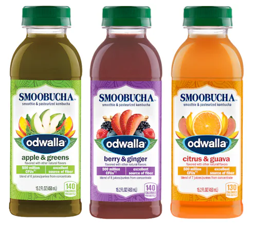 Sometimes it's hard to choose between two delicious good-for-you beverages. Now, you don't have to. Odwalla just released Smoobucha, a smoothie-kombucha hybrid. With flavors like Citrus & Guava, Berry & Ginger, and Apple & Greens, Odwalla describes Smoobucha as a unique mix of fruits and vegetables, pasteurized kombucha, fiber, and 500 mm colony forming units (good bacteria). If you like to take your breakfast on the go (or just prefer to get your snacks in smoothie form), this new product might just give your juicer a run for its money.