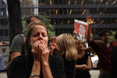 As the two were preparing to testify, anti-Kavanaugh protesters gathered outside of the U.S. Capitol to show their support for Ford and opposition to Republicans' dismissive reaction to her accusation. After holding a moment of silence for survivors of sexual assault, many of the demonstrators began chanting, "We believe Christine Ford, we believe Anita Hill," before marching to the Supreme Court itself and chanting, "No means no, Kavanaugh has got to go." According to USA Today, Capitol police arrested 59 of the protesters, ostensibly for blocking a street.