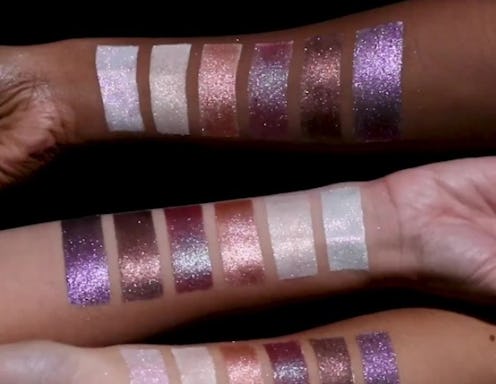 The nebulous-looking palette is limited edition and holds six prismatic, high-impact shades that look like they're embedded across a Milky Way background. The formula is meant to be smooth and creamy, using finely milled glitter to prevent annoying fall-out that could ruin your makeup look. But while the palette photos look pretty, the swatches are what are going to make you fan yourself. You would not have guessed that the shimmer payoff was that intense just glancing at the shadow pans.
