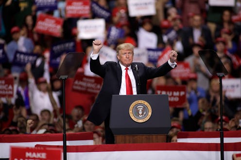 As the crowd booed, the president reiterated his erroneous depiction. "You hear late term but this is when the baby is actually born. It came out, it's there, and then that's it," the president added while making a slicing motion with his hand as if depicting a beheading. Bustle has reached out to the White House for comment.
