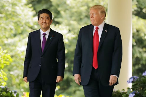 While talking to Japanese Prime Minister Shinzo Abe at the G-7 summit, President Trump told Abe he'd send 25 million Mexicans to Japan, the Wall Street Journal reports, and that this would ensure Abe's defeat in the next Japanese election. Trump was reportedly not being serious, but rather attempting to make a rhetorical argument against lenient immigration policies. Bustle has reached out to the White House for confirmation on the reports.