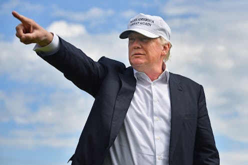 "Theresa May should not have dignified Trump with a visit to the U.K.," Ben Stewart, a spokesperson for Greenpeace U.K. which has claimed responsibility for the paragliding protest, tells Bustle in a statement via email. "The vast majority of British people are appalled by his words and deeds. He is, simply, the worst president ever. That's why we flew over him with a message branding him well below par."