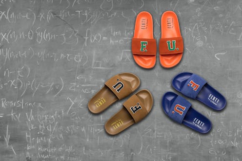 The suede slide also replaces the Puma name and the cat logo with the "F.U." branding that defines the new Fenty collection, which has a decidedly collegiate vibe. Of course the letters are a playful exercise in double entendre, and turn this shoe into a legit conversation starter.