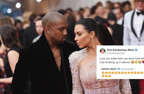 While the rapper didn't attend the gala, he was still all about Kardashian's fashionable Versace look. On May 7, he tweeted a photo of his wife from the event with a slew of fire emojis. Later that night, the reality star responded to her husband's sweet message with one of her own. In her reply, she also managed to reveal why her husband wasn't by her side at the event and it's a reasonable excuse. She tweeted, along with some fun emojis of her own: