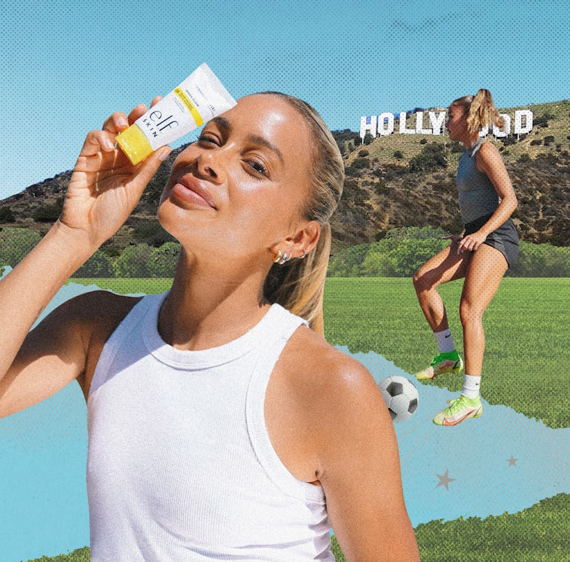 A self-proclaimed “big skin-care girlie,” Gorden easily applies sunscreen three to four times per day, especially on long training days when she’s outside from nearly 8 a.m. to 2 p.m. “I really care about skin care — even more than makeup — just because I’m sweating so much during training and on game days,” she Gorden.