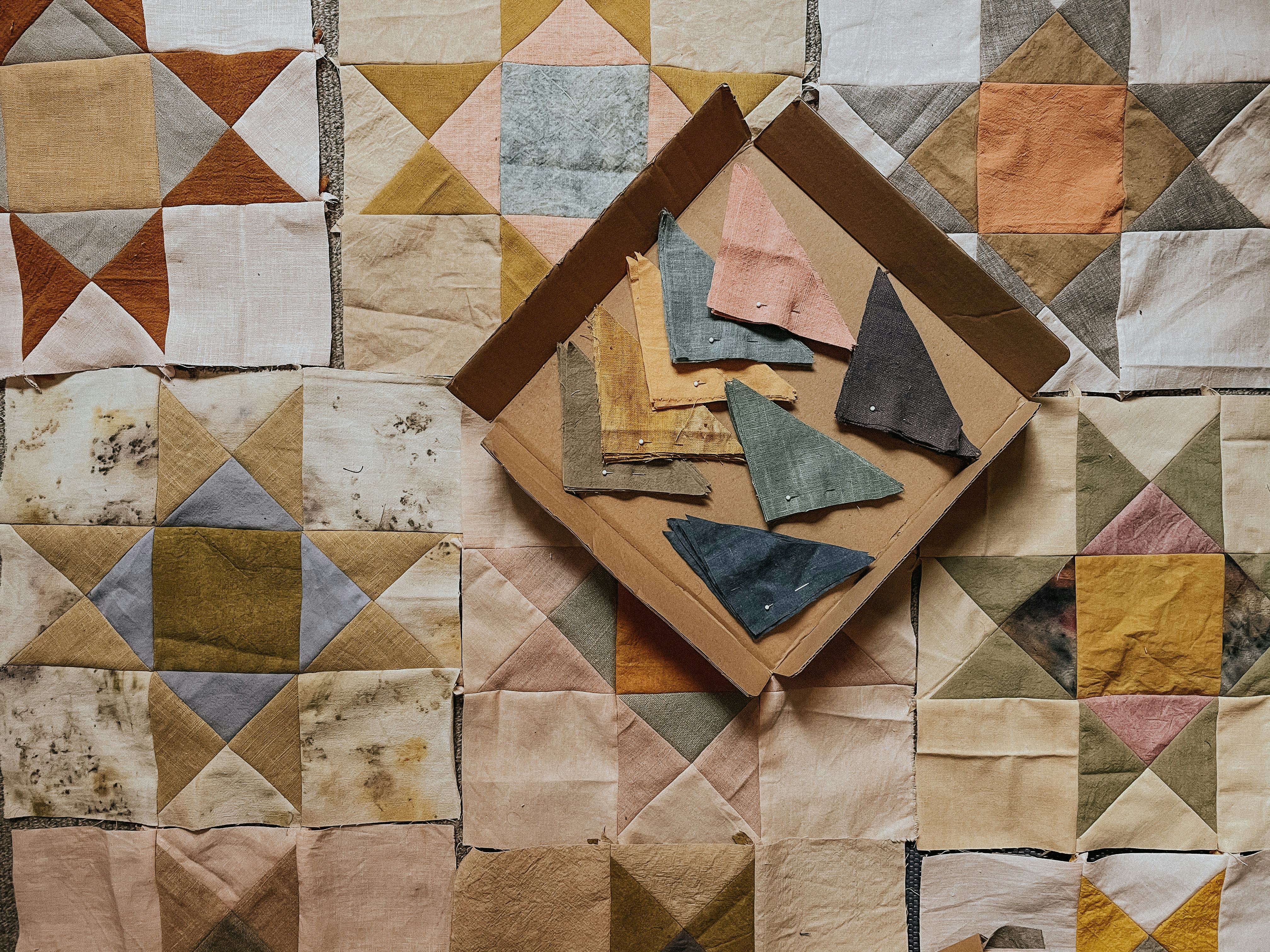 It’s for this reason that Jess Bailey decided to start Public Library Quilts. Originally from California, she currently works as an art historian in London, specialising in work made in the European Middle Ages. Growing up, Bailey was surrounded by creative makers; her grandma taught her to sew when she was a child, and her dad would make brightly-coloured nylon kites to fly on the beach in her home state of California. On the shelves in their house, volumes on establishment abstract painters like Mark Rothko sat next to books about the Gee’s Bend quilters; a community of Black women in Alabama who have passed their bold, experimental quilt-making methods down through three generations. “I was very lucky to grow up in a family where there was no question whether quilts were art or not,’ Bailey explains. “I was steeped in that patchwork and sewing culture, and sleeping under the quilts that my relatives had made.”
