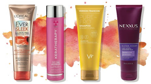 As someone who perennially bleaches their hair, I'm pretty into all things keratin. I get the odd keratin treatment here and there, but to keep my hair looking silky and smooth between salon visits, I tend to reach for a keratin shampoo in the shower. There are a lot of keratin shampoos on the market these days, though, and not all of them are created equally. So, to help you on your search for the best keratin shampoos, I've compiled a handful of my favorites below, based on years of trial and error. All of them use the protein keratin (which, fun fact, is what hair is made of) to repair damage, fight frizz, and promote silkier, smoother hair — for a fraction of the price of an in-salon treatment. Also, because sulfates tend to exacerbate hair dryness, which can lead to more frizz and even irritation on the scalp, most of the shampoos (six out of seven, to be precise) featured here are sulfate-free, too.