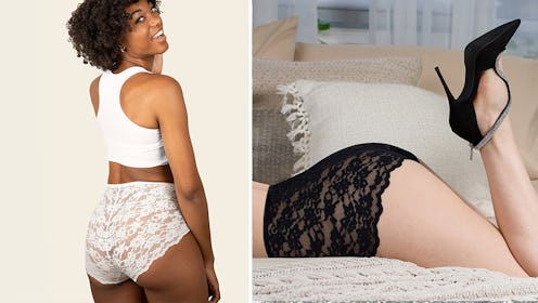 Made of a soft, sheer floral lace crafted of 82% nylon and 18% spandex, these briefs have coveted four-way stretch for a smooth fit and gentle hold, without pinching or digging. The 100% cotton lining is comfortable and breathable, while the pretty, seamless scalloped edges lay flat against your skin to minimize panty lines underneath your clothes, if that’s something you care about. There’s a lot to love about the full-coverage, high-waisted style, too, from its light support under tailored clothes, to the classic pin-up aesthetic when they’re worn alone.