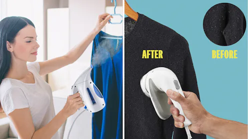 Solution: This Handheld Steamer With Over 70,000 5-Star RatingsA quick way to make an outfit look disheveled is to wear wrinkled clothing. Thankfully, with this handheld steamer, wrinkles can easily become a thing of the past. It’s lightweight, offers up to 15 minutes of continuous steaming, and boasts a 9-foot power cord. It makes any top, bottom, or dress look instantly more polished and is great for packing on trips. Even better? Over 71,000 Amazon shoppers have given this pick a five-star rating, so you know it’s worth a try.
